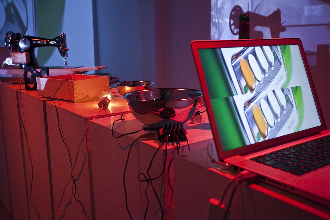 A computer-controlled musical installation comprised of common appliances and housewares.