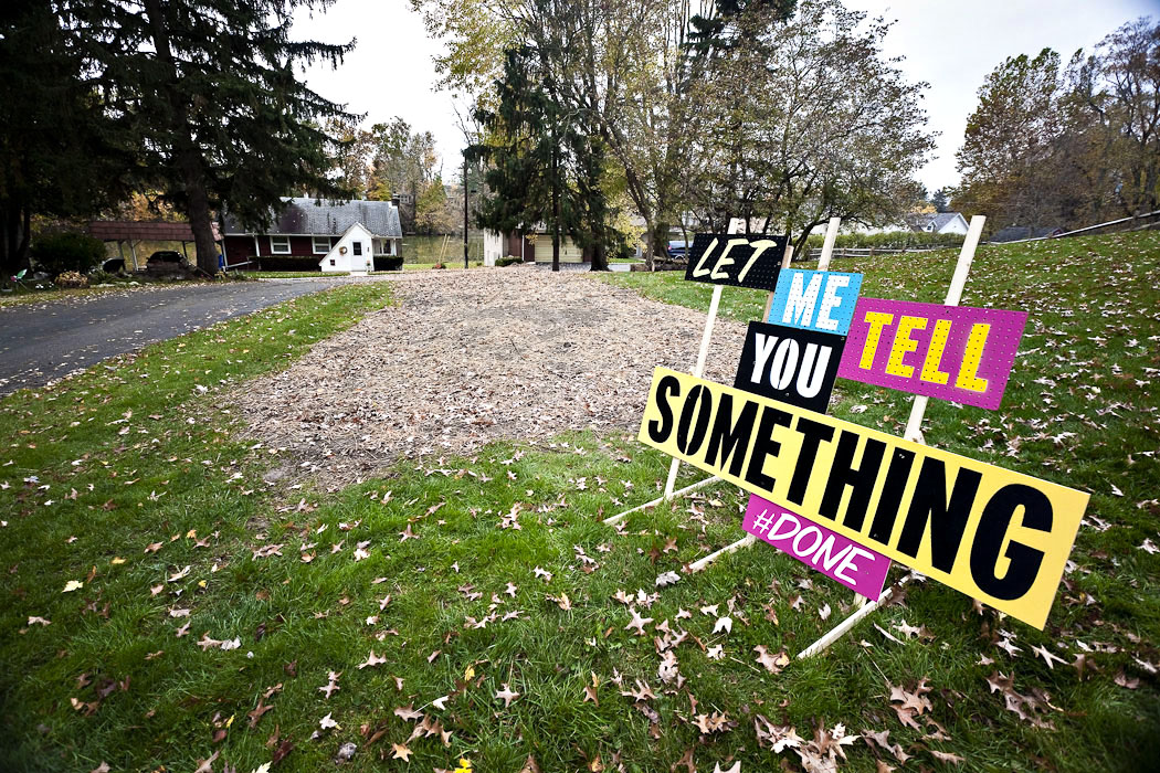 An exhibition celebrating information overload and status updates, as channeled through early 20th century sign painting and roadside advertising.